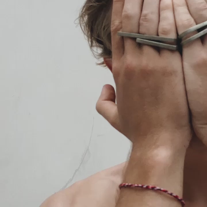 This listing is for our 2 Finger Ring Slim Square in options white brass or brass with an industrial and one of a kind acid finishing.