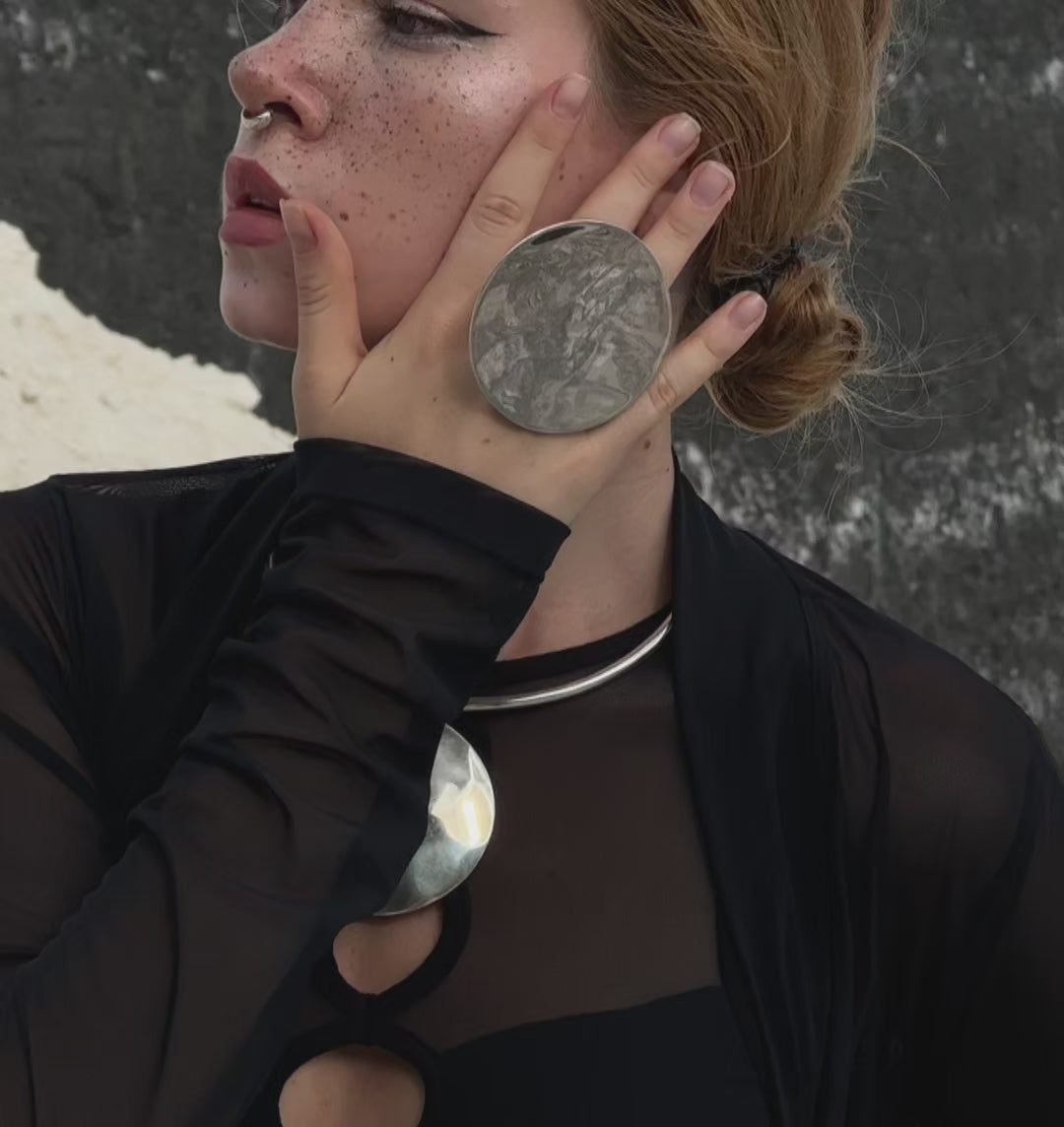 Unusual and bold pendant and choker set made by hand using the lost wax process from sterling silver.