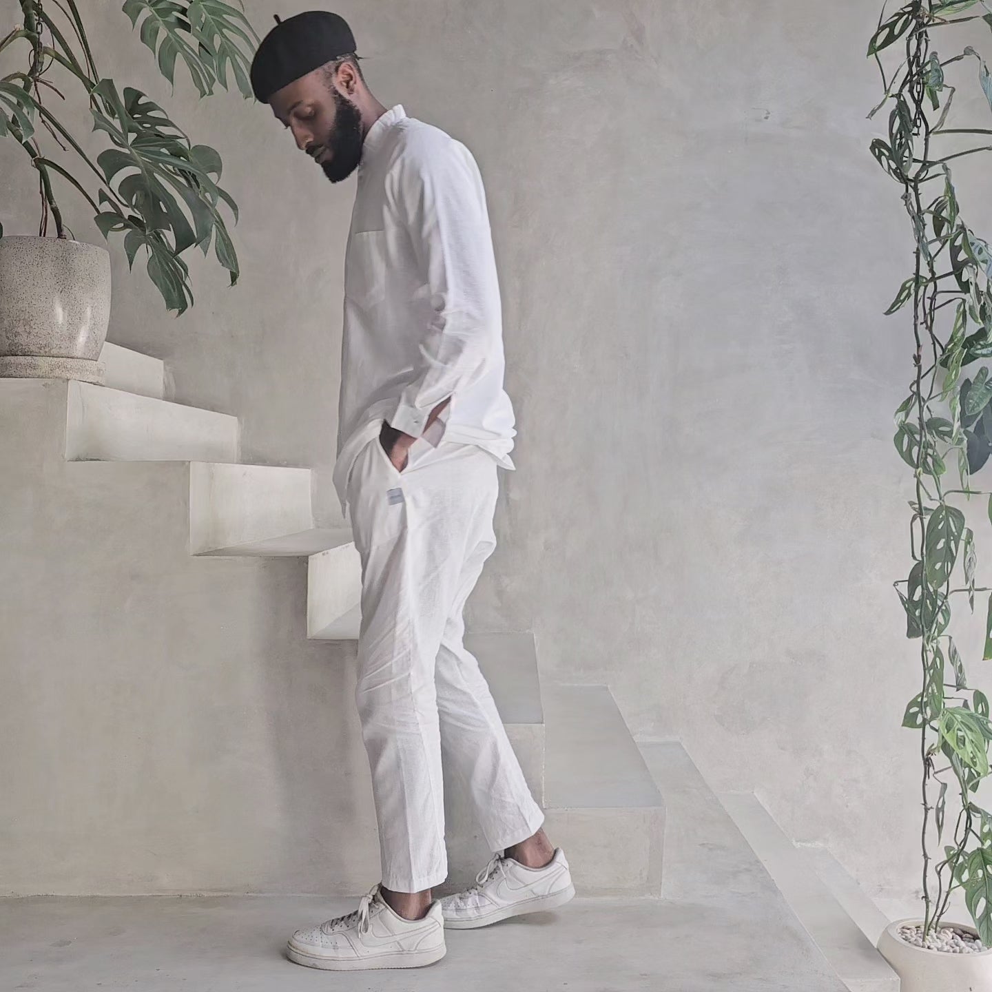 Made from 50% hemp and 50% organic cotton - this one is off white - we also have edgy charcoal gray and black as well.