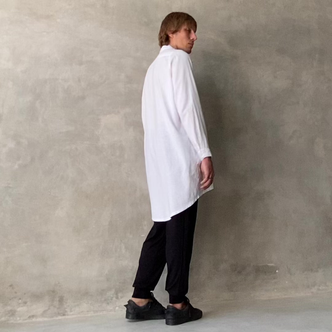 Easy, effortless and stylish Mandarin collar and extra long in the back for a comfortable formal look.