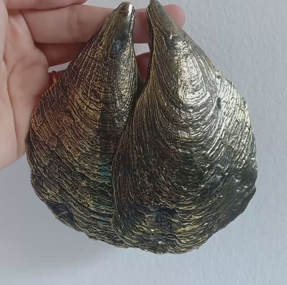 Bold weighted earrings made by hand using the lost wax process from a large oyster shell