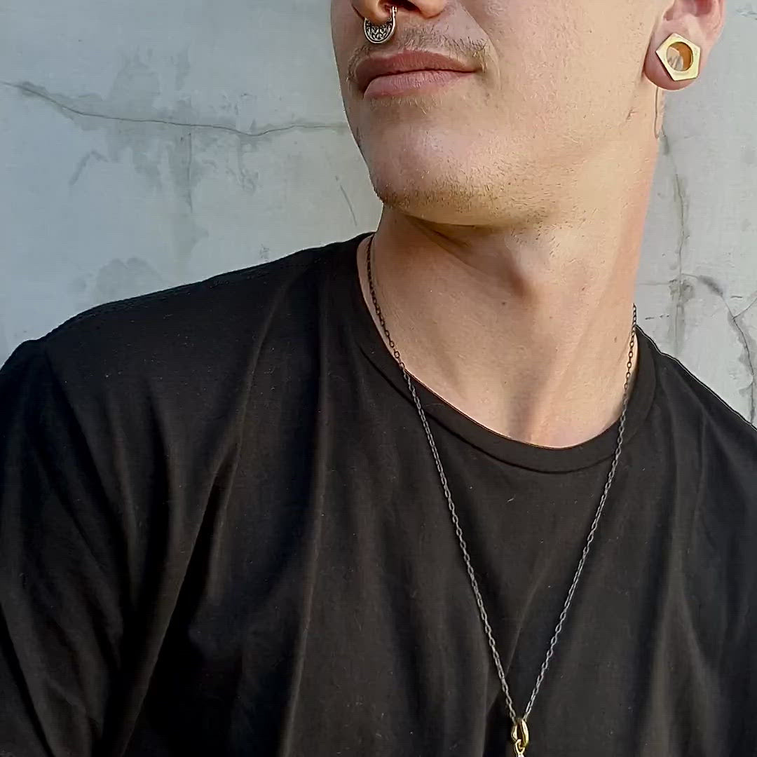 Bold geometric shaped pattern looks great on its own or with earrings or hanging weights of any size or shape through it.