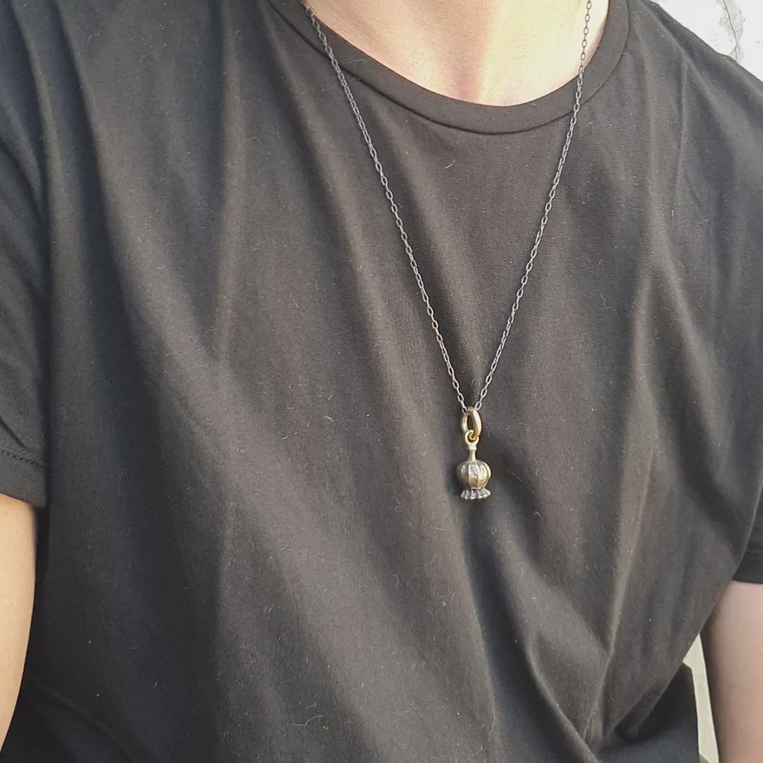 Statement pendant hand made using the lost wax process. A small poppy pod in brass...