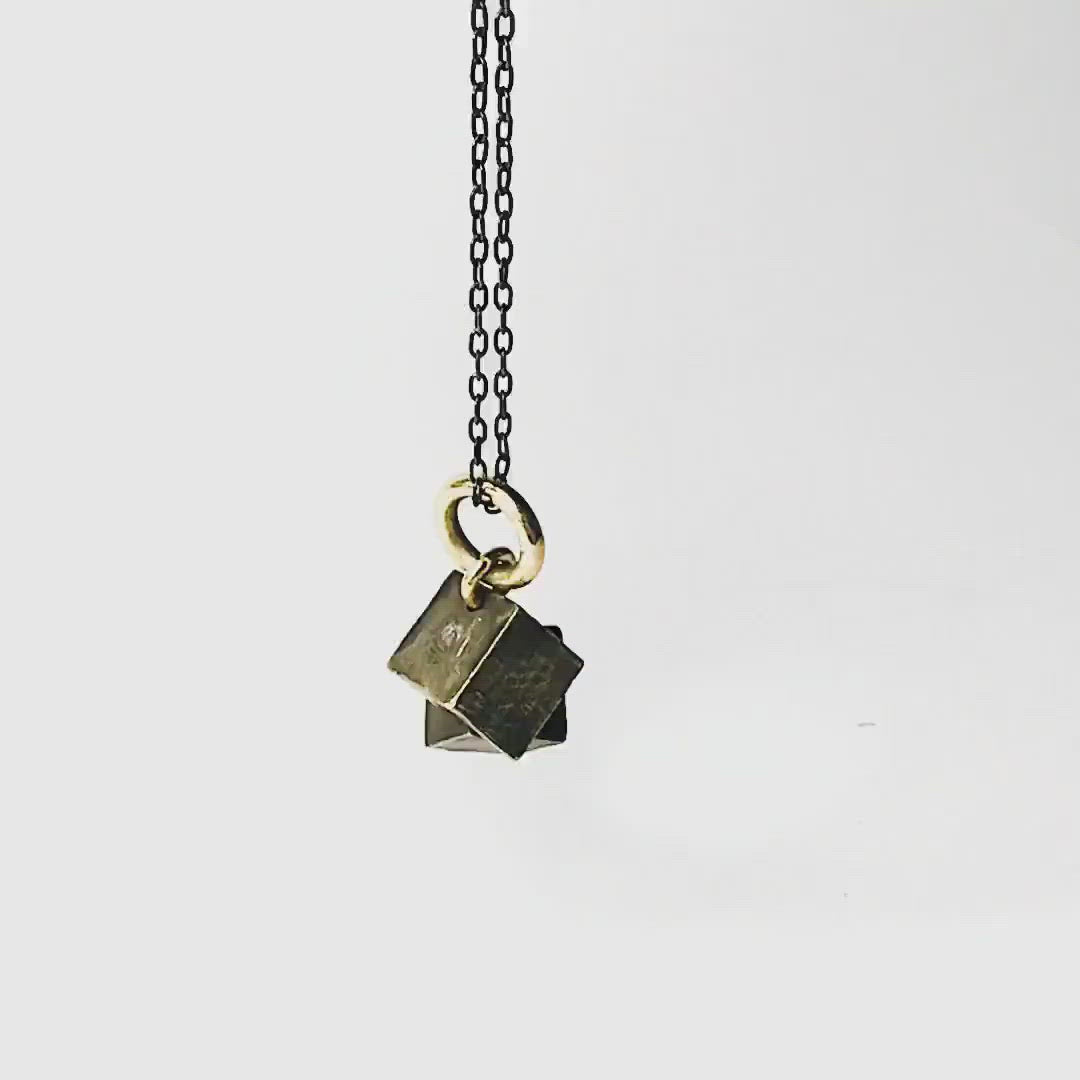 This unusual pendant was cast from a beautiful pyrite crystal, one of my favorite minerals. It has detailed organic geometry and makes a statement. The crystal was molded, then cast using the lost wax process and is finished with an oxide treatment to give it an antique finish and highlight the details in texture.